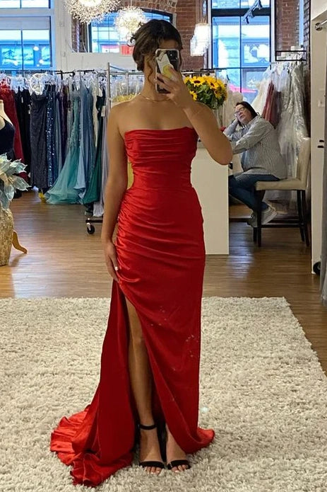 Red Strapless A-Line Empire Party Evening Dress Red Strapless A-Line Empire Party Evening Dress