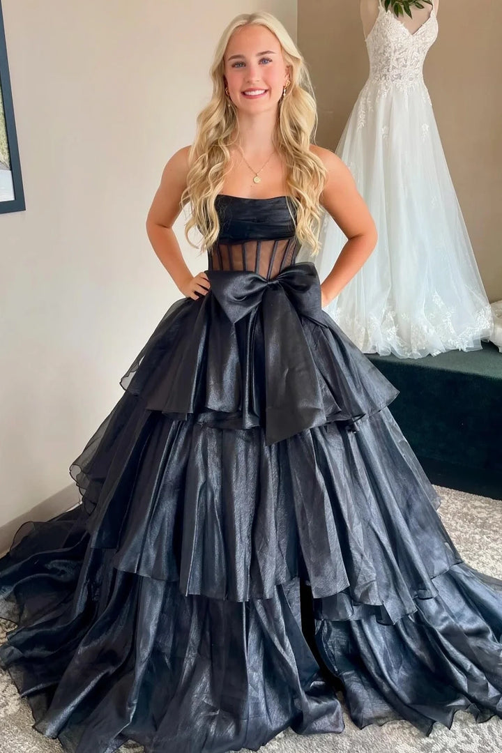 Sweetheart Sleeveless Black Party Evening Dress With Slit