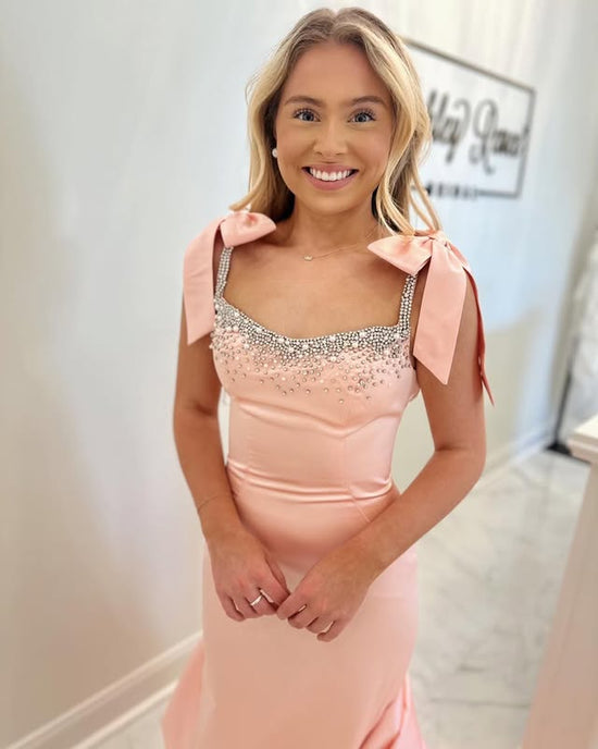 Bateau Bows Straps Beaded Mermaid Party Prom Dress