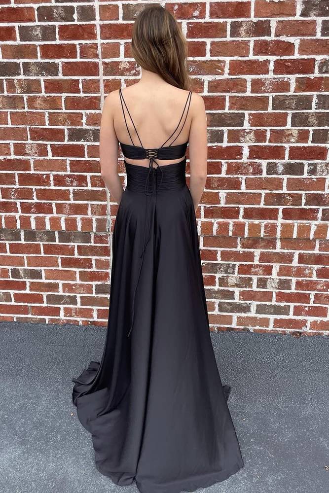 Black Sweetheart Spaghetti Straps Party Prom Dress With Slit