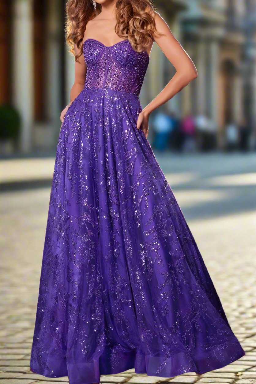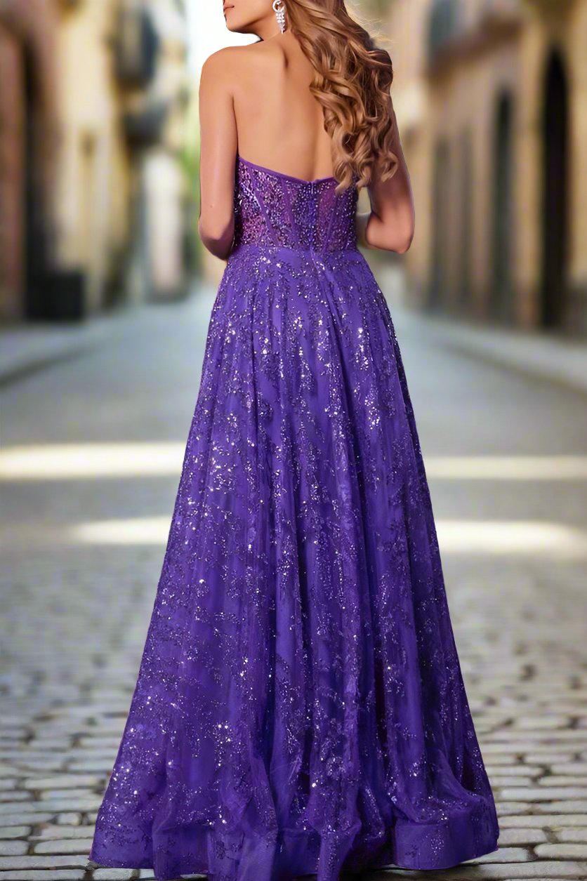Step into the spotlight in our chic lace A-line strapless long formal prom dress! This stunning dress features delicate lace detailing, a flattering A-line silhouette, and a strapless neckline for a touch of elegance. Perfect for any formal occasion, this dress will make you feel confident and beautiful all night long.