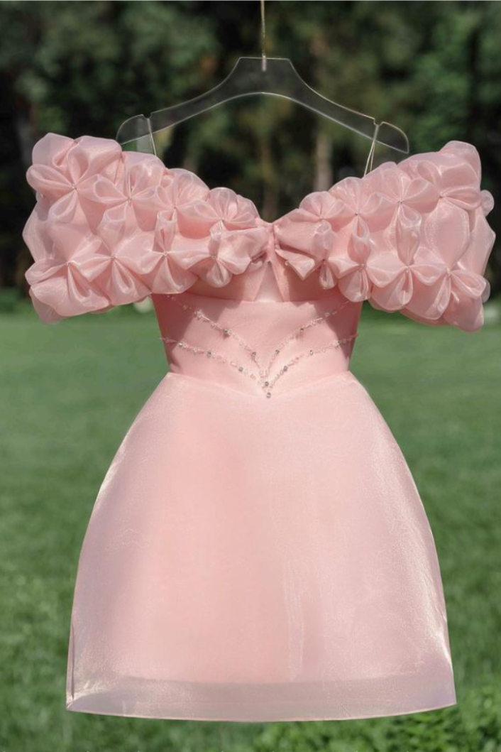 Cute Tulle A-Line Off-Shoulder Braded Empire Short Homecoming Dress