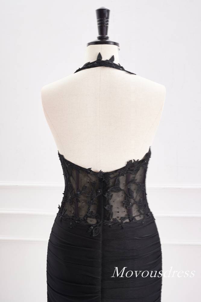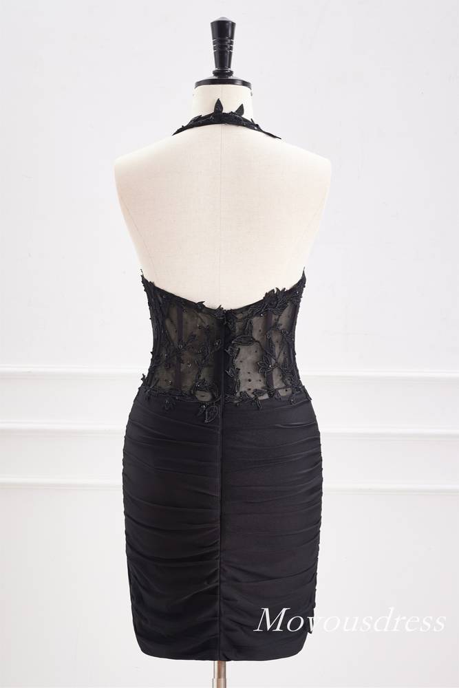 Elevate your homecoming style with our Halter Black Applique Pleated Tight Homecoming Dress. This stunning dress features a halter neckline, intricate applique detailing, and a flattering pleated design. Feel confident and stylish as you celebrate the night away in this beautifully crafted dress.