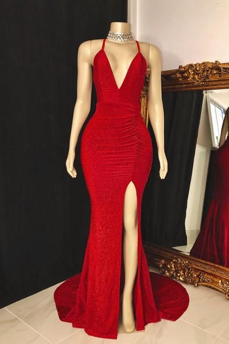 Low V-Neck Spaghetti Straps Mermaid Formal Prom Dress For Black Girls