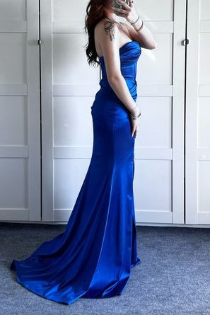 Mermaid Sweetheart Strapless Satin Empire Ruched Long Prom Dress