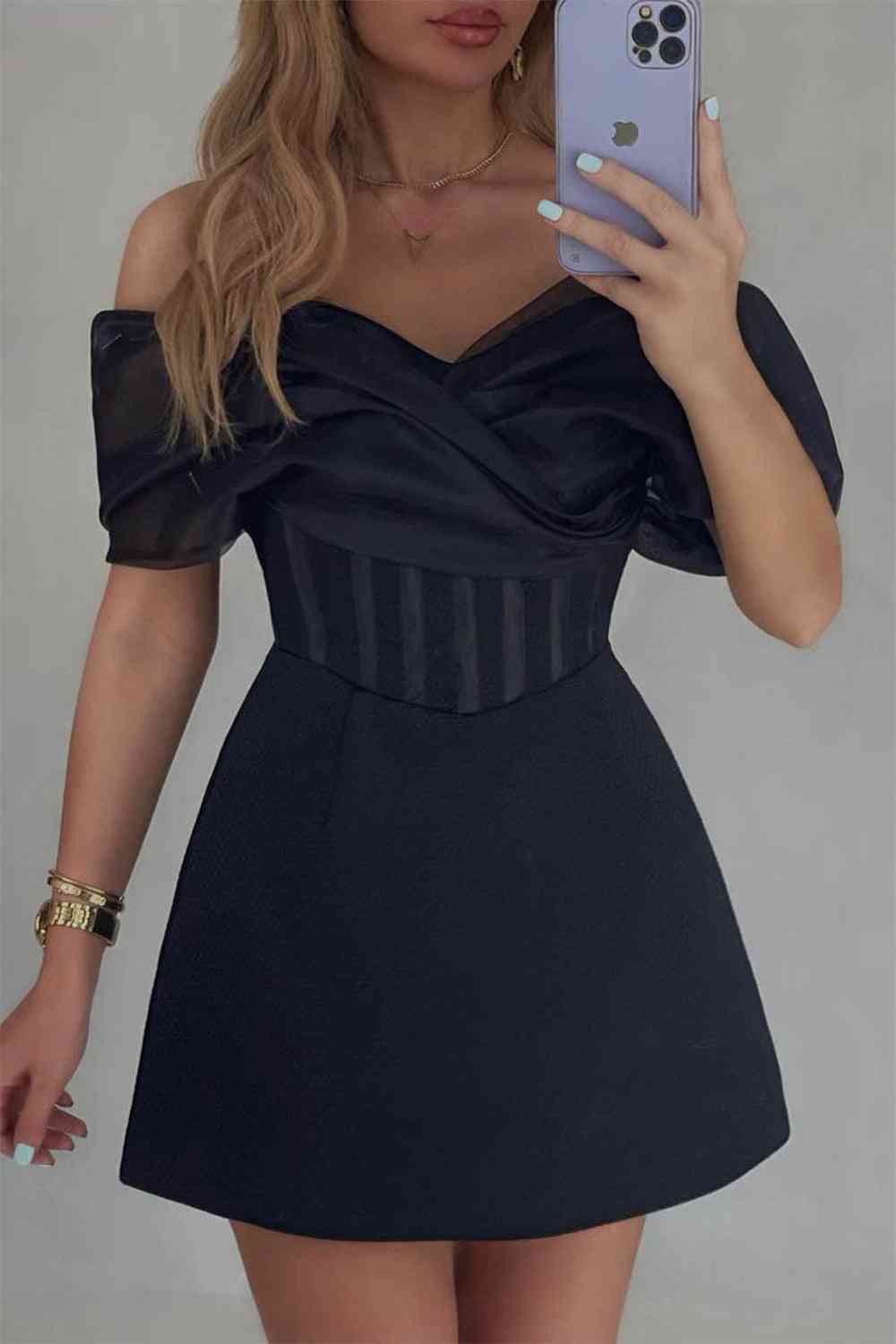 Satin A-Line V-Neck Off-Shoulder Empire Homecoming Dress