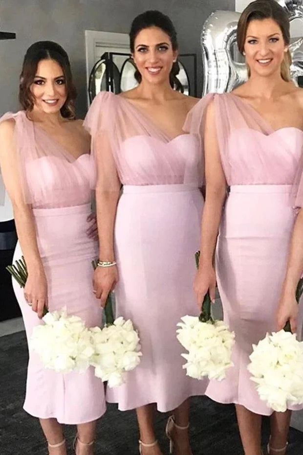 Satin Trumpet Empire One Shoulder Pink Bridesmaid Dress