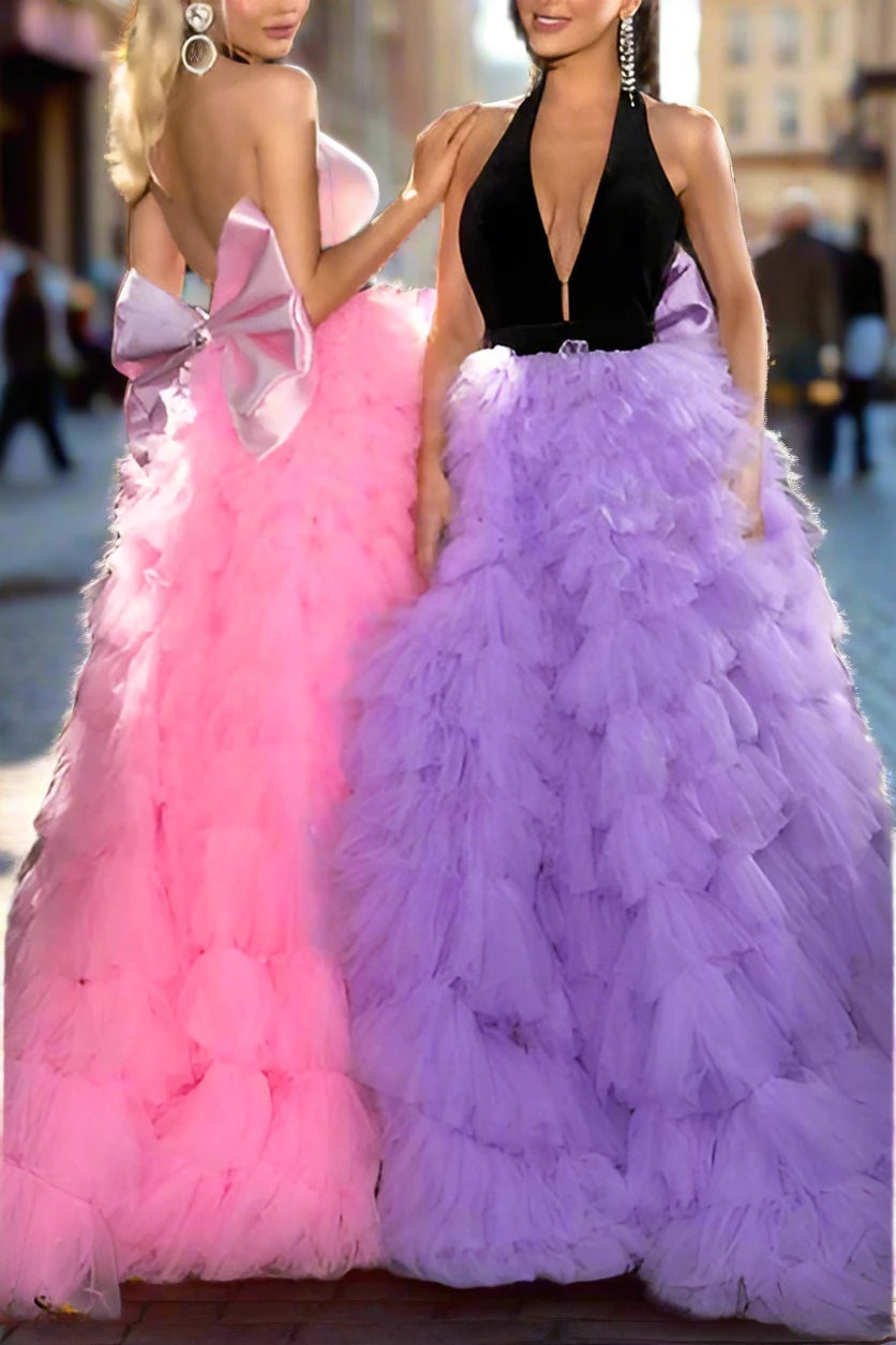 Sexy V-Neck Halter Open Back Two Tone Long Prom Dress
