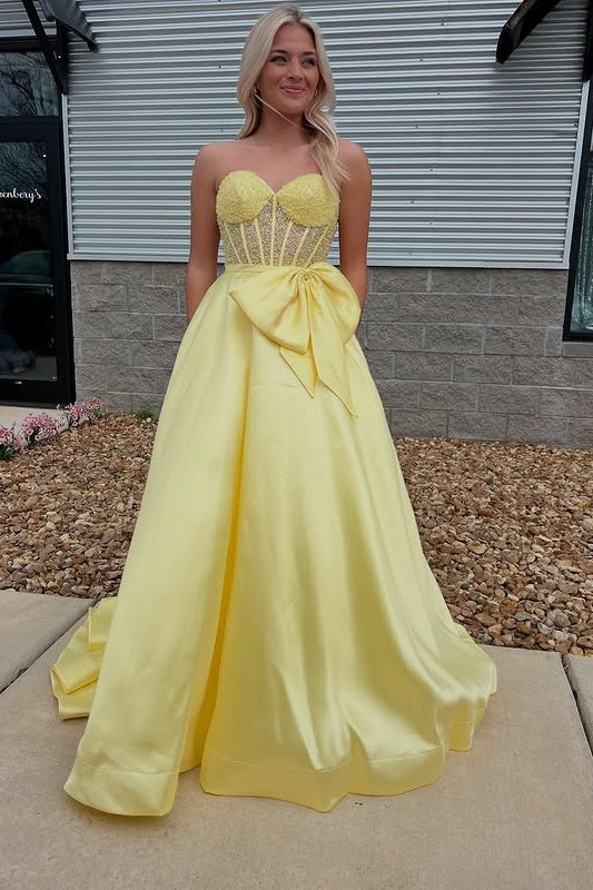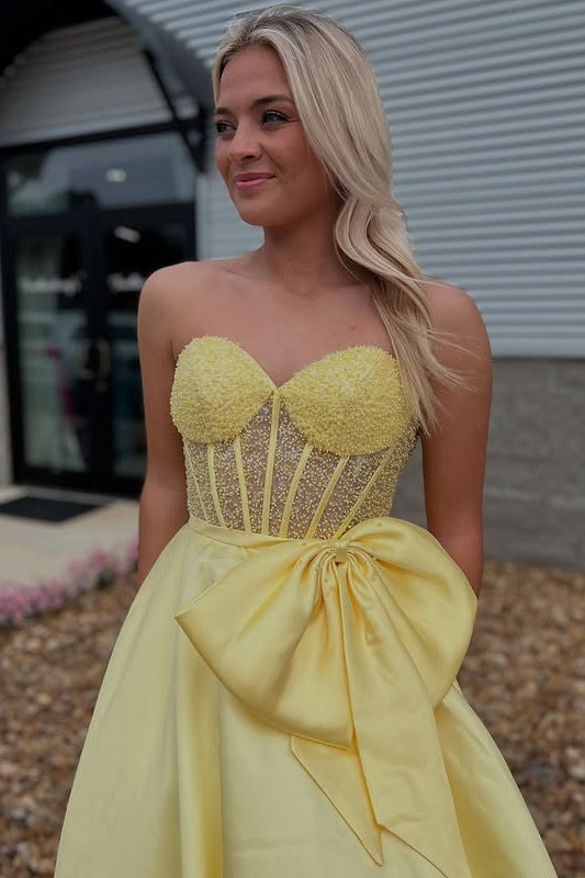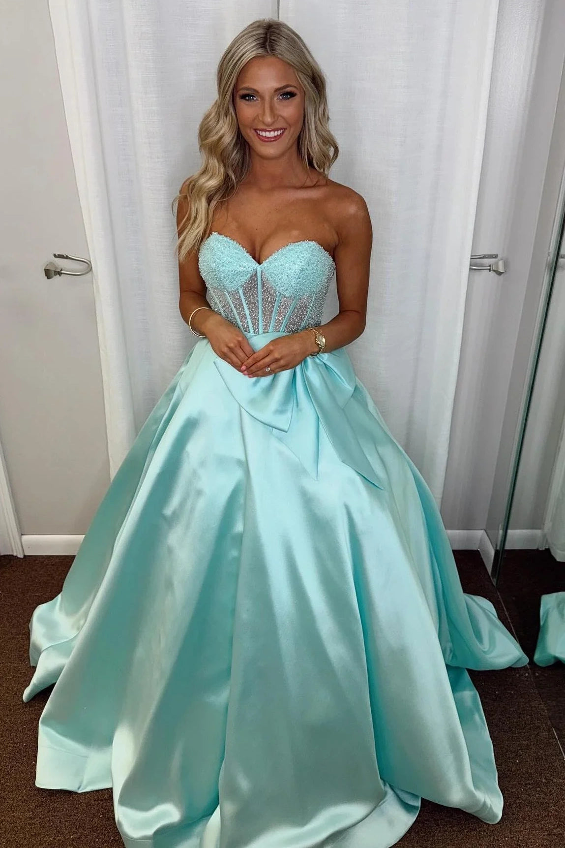 Sweetheart Strapless A-Line Beaded Prom Dress With Bow