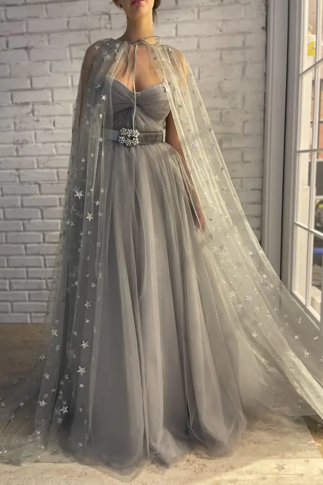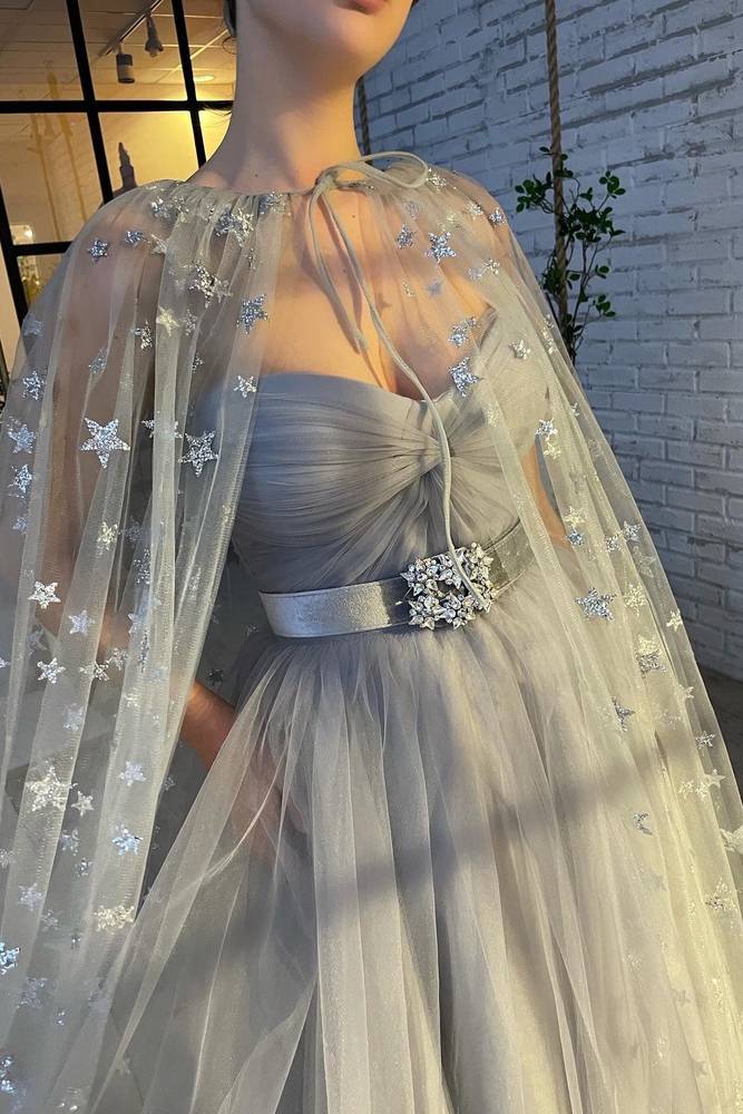 This Sweetheart Strapless Tulle A-Line Prom Party Dress With Bolero is a fashionable and feminine option for any special occasion. The sweetheart neckline and A-line silhouette flatter any body type, while the bolero adds an elegant touch. Made with high-quality tulle, this dress is both comfortable and stylish.