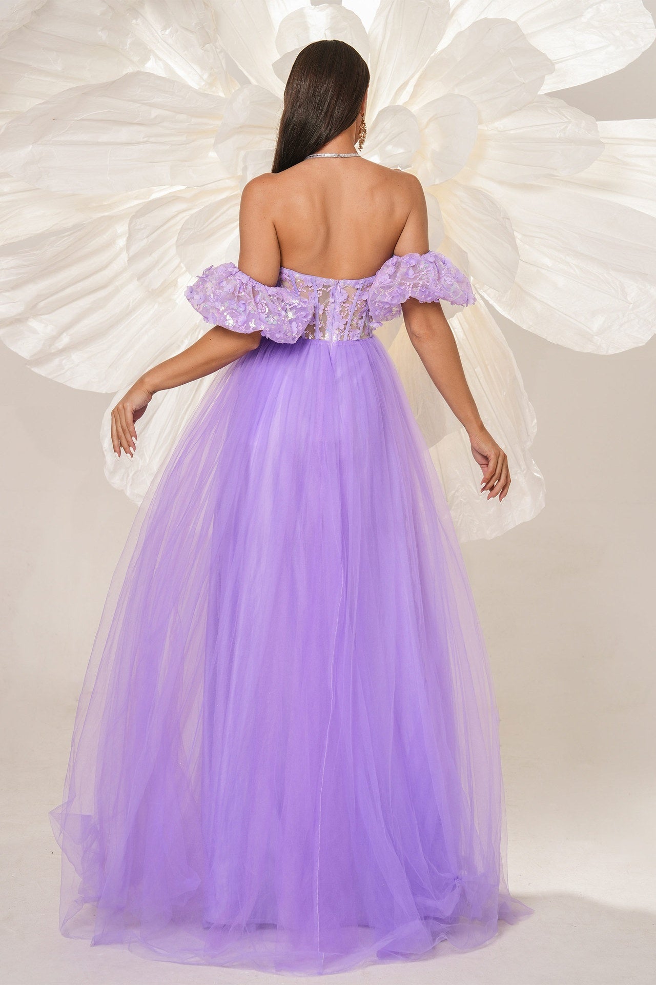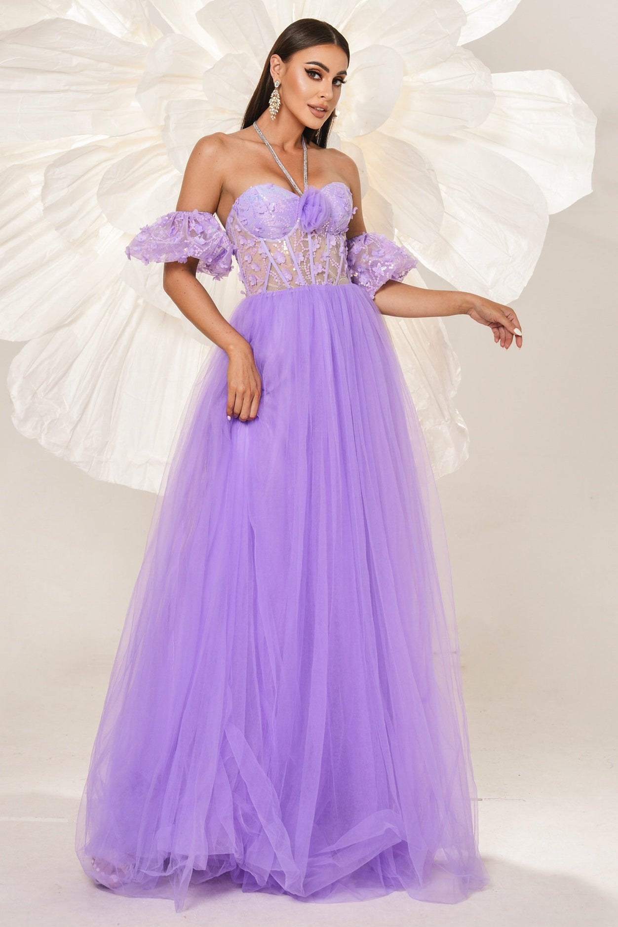Tulle A-Line Beaded A-Line Empire Party Evening Dress