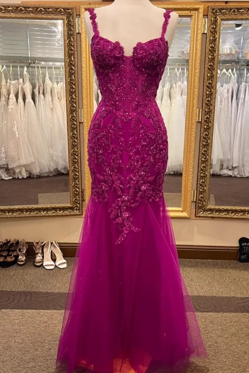 Tulle And Lace Mermaid Spaghetti Straps Prom Party Dress