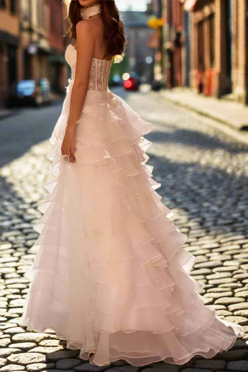 Two Tone A-Line Empire Tiered Prom Dress With Slit