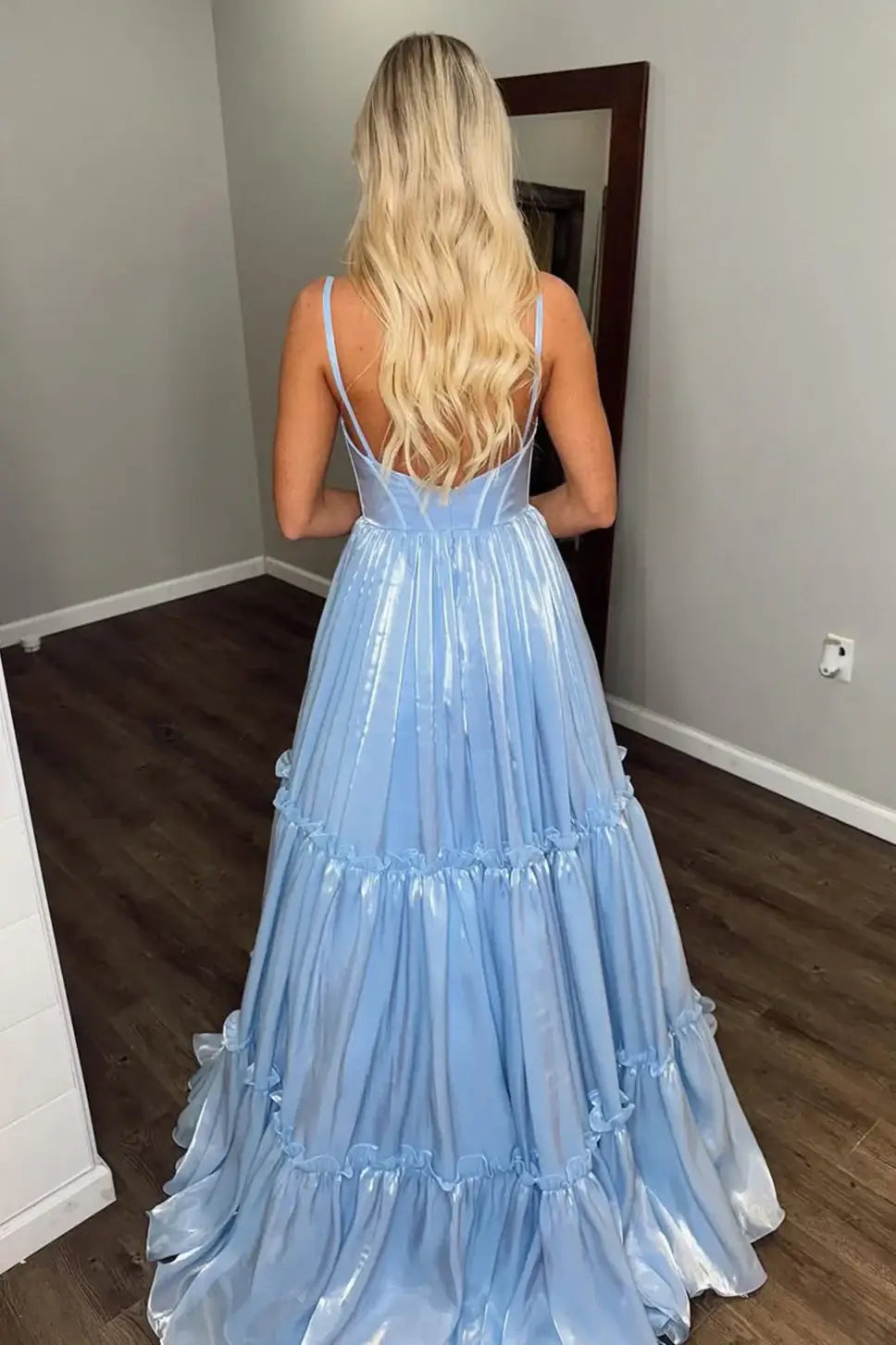V-Neck Spaghetti Straps A-Line Prom Evening Dress