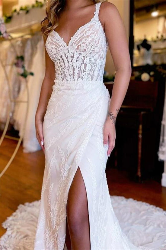 This elegant White V-Neck Applique High Slit Long Bridal Dress is perfect for any bride looking for a timeless and sophisticated look. The intricate applique detailing adds a touch of glamour, while the high slit allows for easy movement and a modern twist. Made with high-quality materials, this dress is sure to make any bride feel confident and beautiful on her special day.