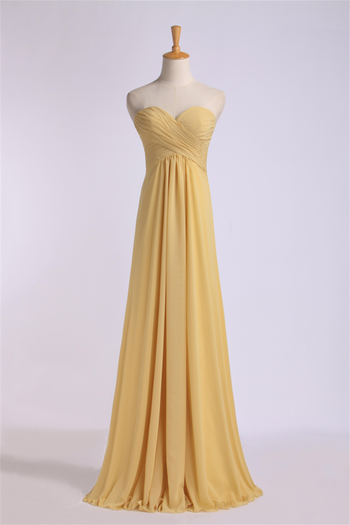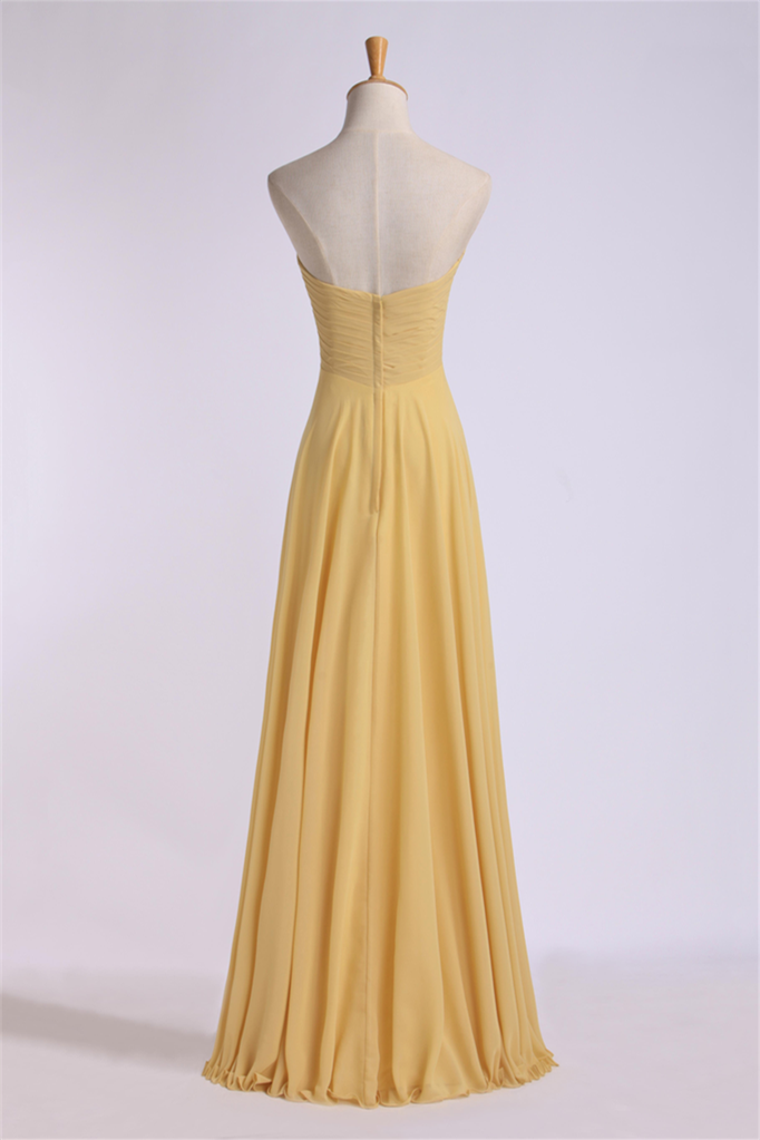 Yellow Strapless Chiffon Long Bridesmaid Dress
